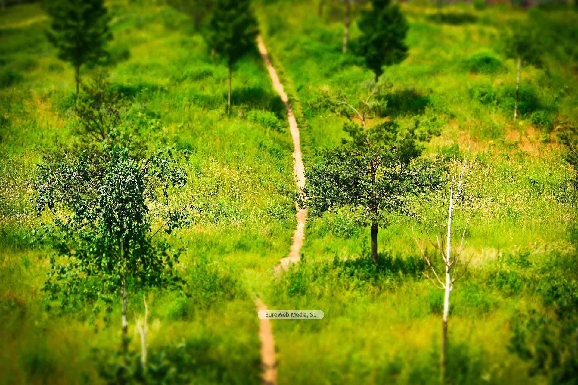 Por detrás de una casa de turismo rural aparece una senda estrecha de tierra que lleva a Piñera.