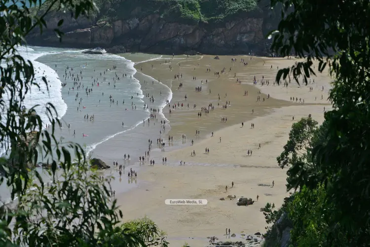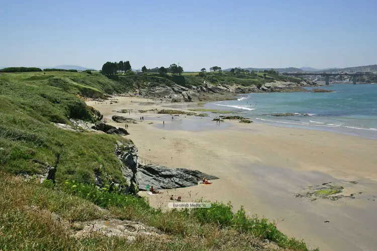 Playas | Tapia de Casariego | Características. Ocupación: Alta. Longitud aproximada: 150 m (junto a la de Los Campos 250 m) Accesos: Rodados. Servicios: Aparcamiento: Sí. Socorrismo: No. Señalizada con banderas. Material: Arena fina. Color: Tostado. Forma: Triangular. Desembocadura fluvial: Río Anguileiro. Entorno: Urbano. Tipo de playa: Oleaje medio. Atractivos: Naturales, turísticos, recreativos y deportivos (surf, pesca deportiva y submarina).