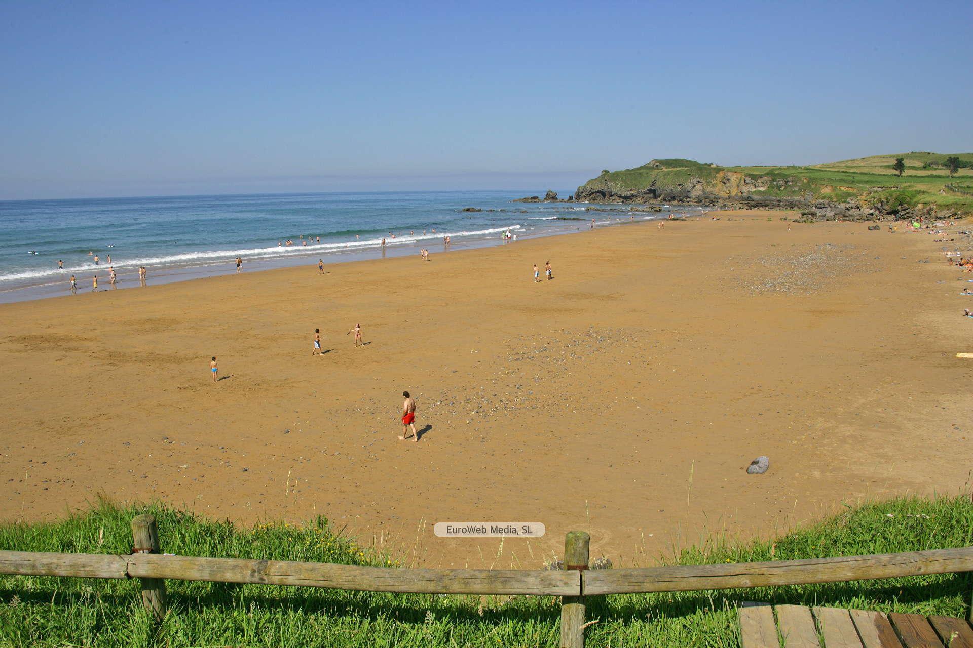 A diferencia de las playas de La Espasa y El Viso, es la más salvaje de este conjunto, rodeada de prados, está formada por arena y cantos en su parte posterior. Se trata de una cala más protegida y más tranquila, continuando por ella la senda litoral que recorrerá toda la costa de Caravia. En sus proximidades encontraremos el Bolu Melín, una prominente roca vertical y de forma fácilmente reconocible.